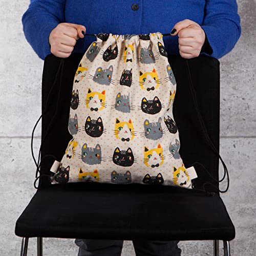Standout patterns on a cinch-style drawstring backpack. 14 x 17-inch sizing ideal for carrying essentials, gym gear or odds and ends for a day outFrolicking felines are purrfectly poised against a playful, polka-dotted background. Mischievous grins and wide eyes pop with high-contrast colour and hand-drawn ink details.Designer Erin is a hand-lettering virtuoso with an affinity for drawing an eclectic mix of the things she loves; cats, bikes, and veggies.100% cotton block-printed bag is machine-safe β simply wash in cold water on delicate and hang to dryDanica Studio is our design teamβs creative collection of patterns and images that share the beauty created when the world of our imaginations interweaves with the world around us. excellent for everyday use. supreme materials and excellent craftsmanship ensure long-lasting durability.