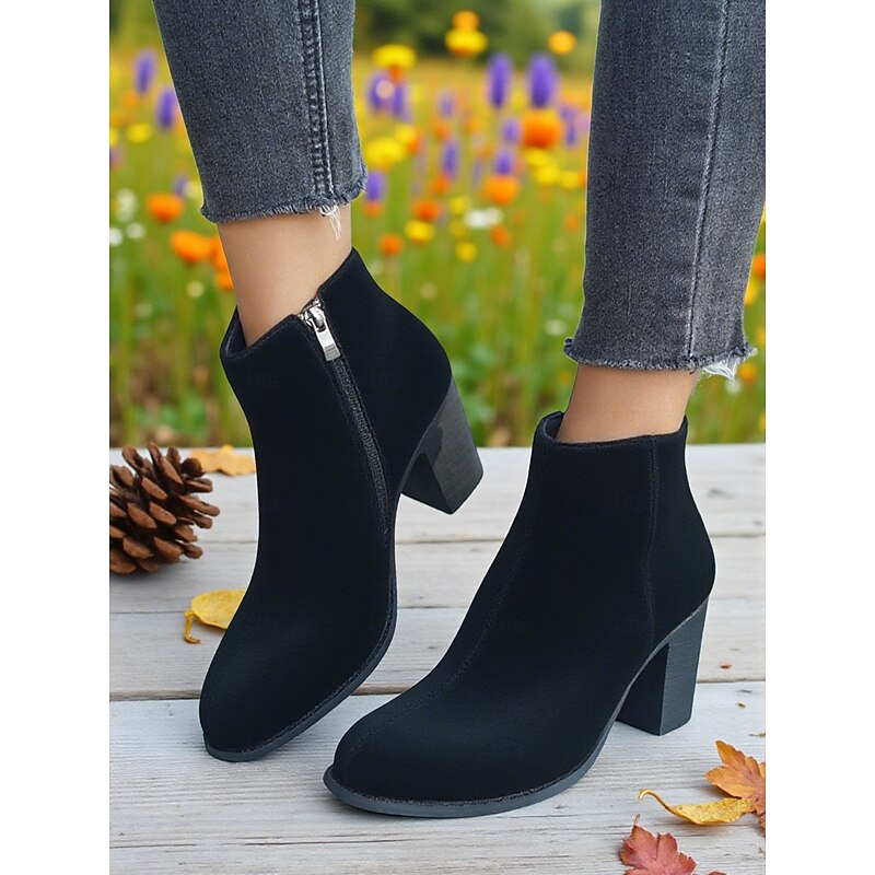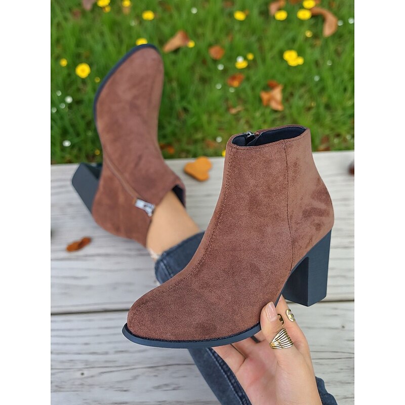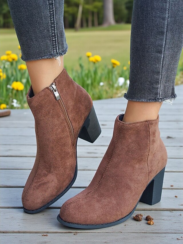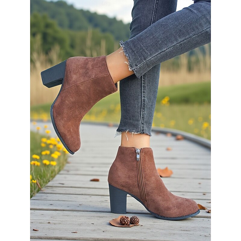HOT ! Women's Brown Faux Suede Ankle Boots with Side Zipper – Casual Block Heel Short Boots for Work, Shopping and Everyday Outfits