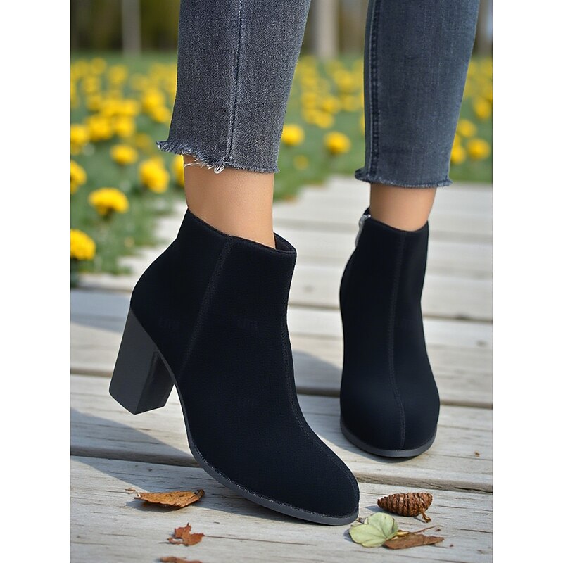 Highlights - Luxurious faux suede upper material - Stylish chunky heel for added stability and fashion-forward look - Comfortable round toe shape for all-day wear - Durable rubber outsole for long-lasting support and traction