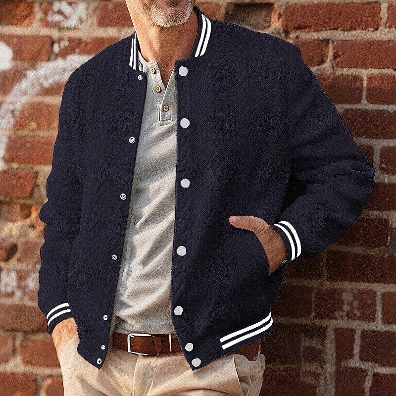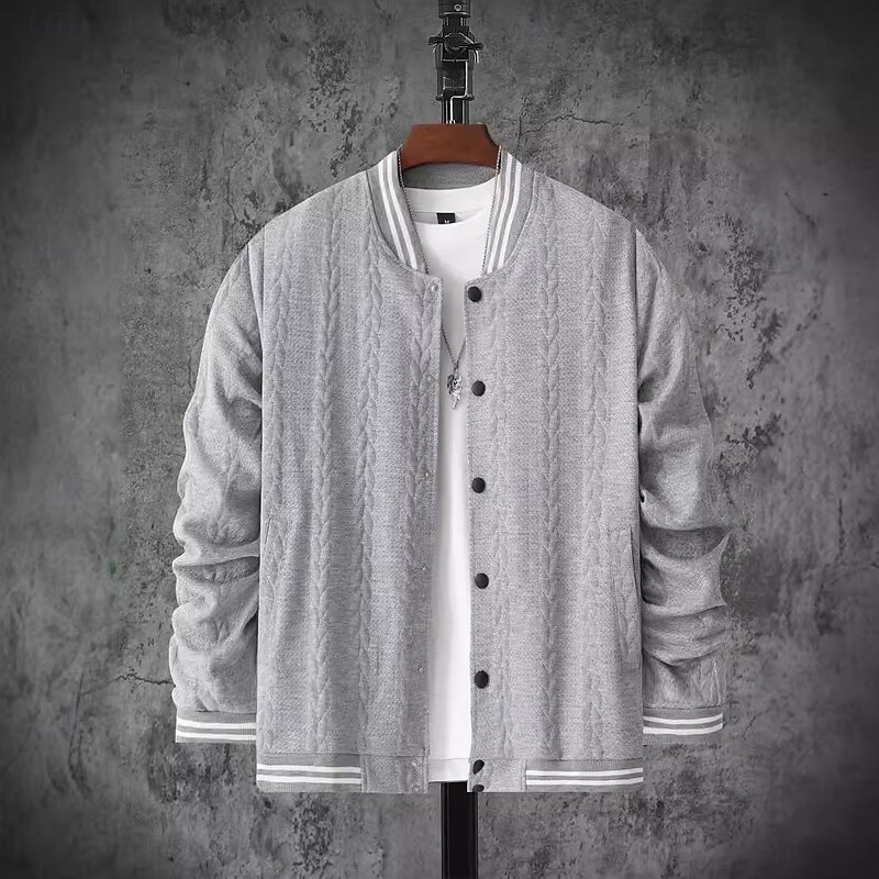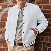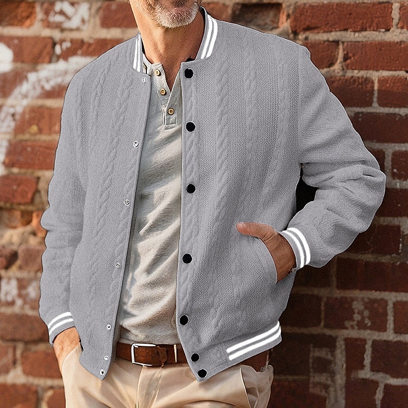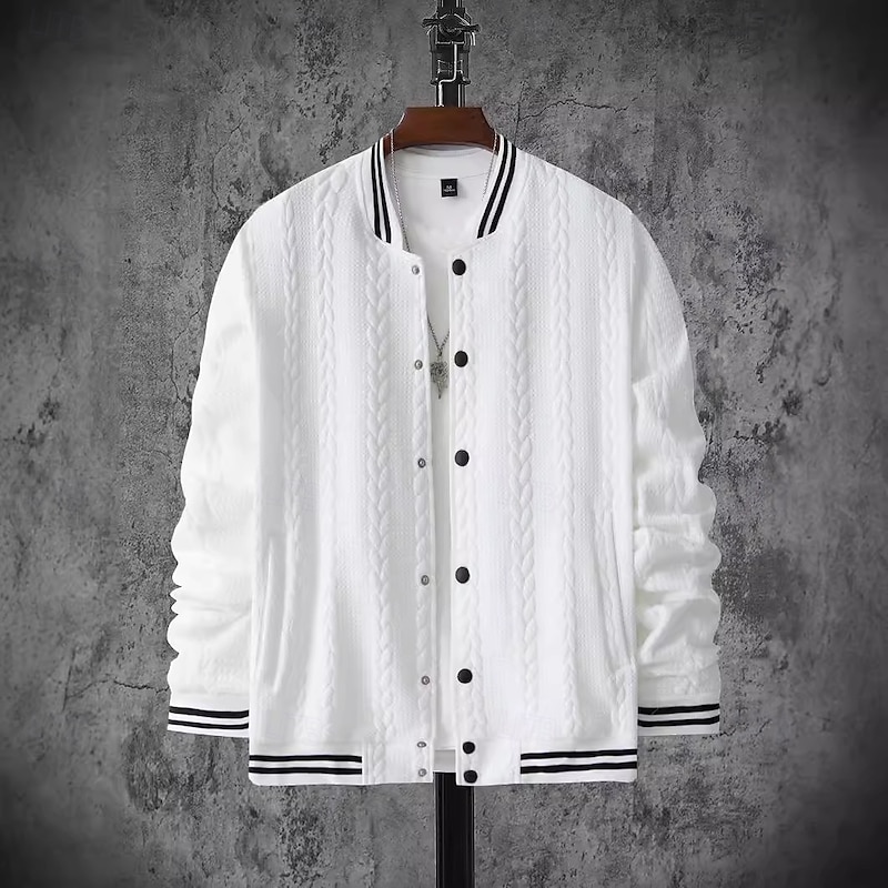 More information about Men's Lightweight Jacket Casual Jacket Varsity Jacket Vacation Daily Breathable Pocket Jacquard Spring Fall Striped Fashion Classic Stand Collar Regular White Navy Blue Brown Khaki Gray Jacket