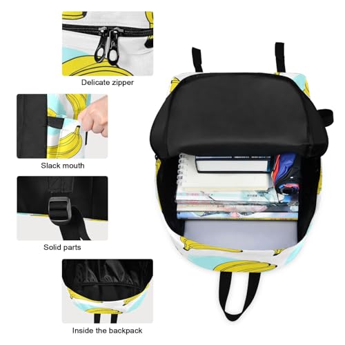 MCHIVER Banana Fruit Blue School Backpacks for Boys & Girls Light Weight Bookbag set with Lunch Box Rucksack for School Work 2 Pcs 16.5 Inch 3
