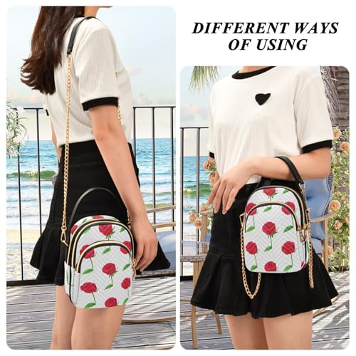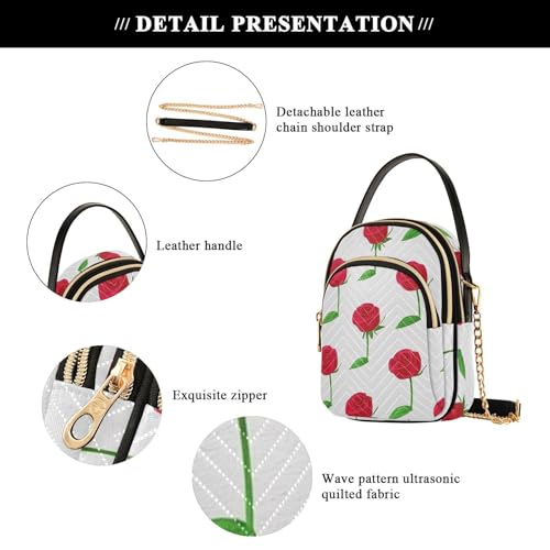 Womens Shoulder Handbags Tote Bag Quilted Purses for Women Rose Design with Chain Strap for Travel Work,Multi1 5