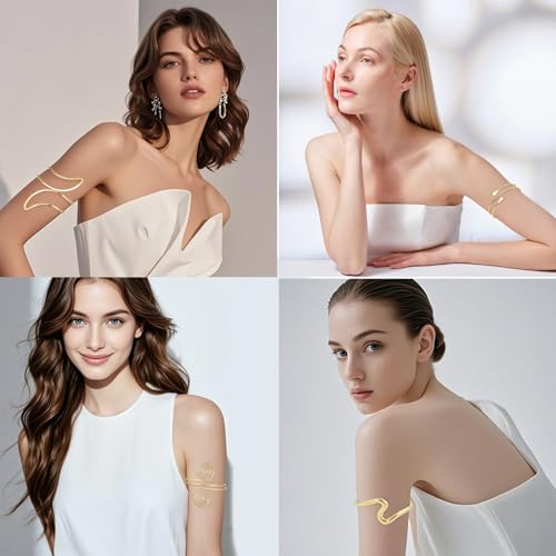 Material: Alloy SteelMetal type: Alloy SteelClasp type: Lobster ClawGem type: No gemstoneArm Cuff Jewelry for Women: Our gold arm jewelry set includes hammered arm cuff, layered arm cuff, swirl arm cuff bangle, wave upper arm bracelet, layered arm cuff gold and spiral arm cuff. The arm jewelry upper arm makes you charmingArm Cuff Material: These arm cuff bracelets are made from high-quality metal, free of lead and nickel. All-round high polished, smooth without sharp edges, and safe to wear. Simple wire arm bracelet upper arm band fashion jewelry for women snug to wearAdjustable Arm Cuff Bangle: The inner diameter of the upper arm cuff bracelet is approx. 8cm/3.2in and can be easily adjusted to fit most people by gently stretching and contracting. Please measure your arm before ordering, otherwise it may fall off easily, what suits you is the bestArm Cuff for Women: The gold arm cuff upper arm caters for different fashion preferences and occasions, suitable for balls, proms, parties, cosplay, fashion shows, Halloween, wedding, as well as for daily wear. Arm cuff makes you look more attractive and charming, catch people's eyes and be the center in the crowdsBest Present: Package includes 6 pieces arm cuff, the arm bracelet is a perfect present for friend lover and family on Christmas, birthdays, Valentine's Day and other festivals. You will be the most attractive person in the crowd with these upper arm cuff on. The thoughtful and versatile present carries your best wishes Perfect for everyday use. excellent materials and excellent craftsmanship ensure long-lasting durability.