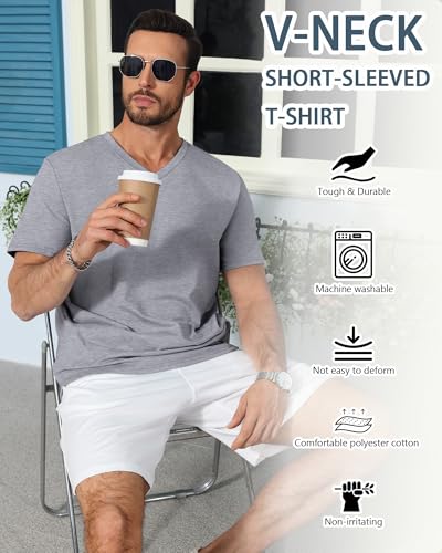 • Soft and Breathable Fabric: The men's t-shirts are made from 65% polyester, 30% cotton and 5% spandex, which is breathable, and durable. The polyester resists wrinkles, cotton feels soft against the skin, and spandex offers stretch for day comfort