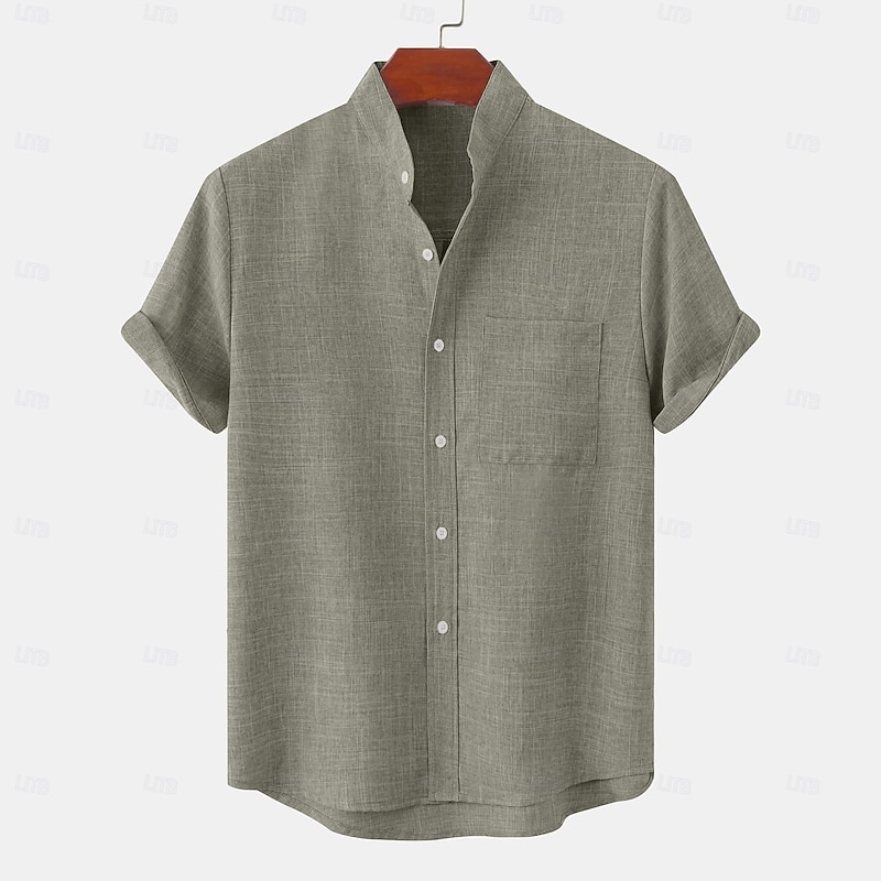 More information about Men's Linen Shirt Casual Shirt Band Collar Shirt Plain Vacation Hawaiian Black White Yellow Pink Short Sleeve Henley Spring & Summer Clothing Apparel Front Pocket