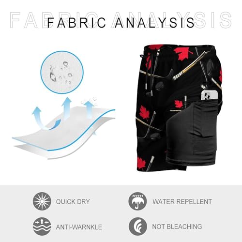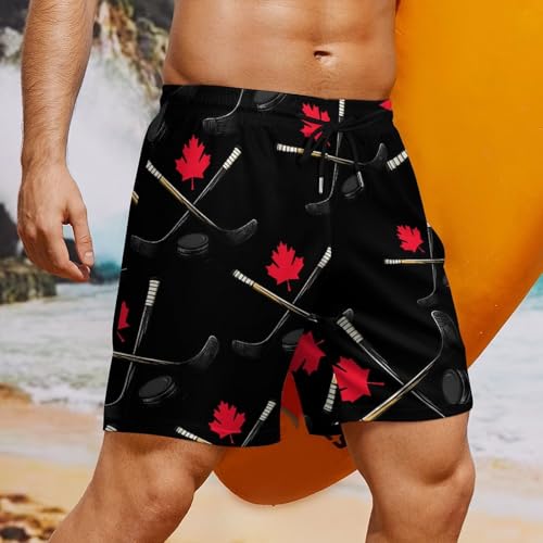 HOT ! Canadian Hockey Canada Flag Men's Swim Trunks Quick Dry Bathing Suit Board Shorts with Compression Liner