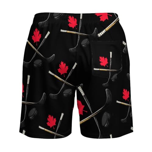 Canadian Hockey Canada Flag Men's Swim Trunks Quick Dry Bathing Suit Board Shorts with Compression Liner 1