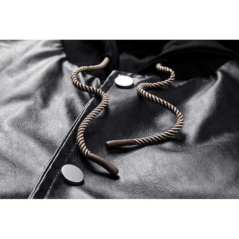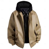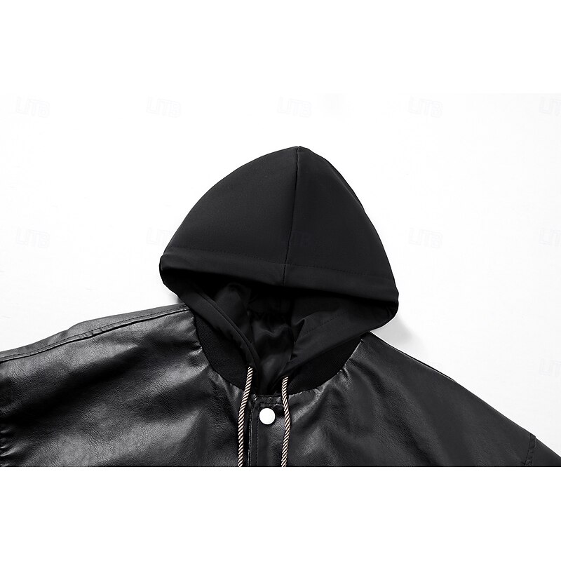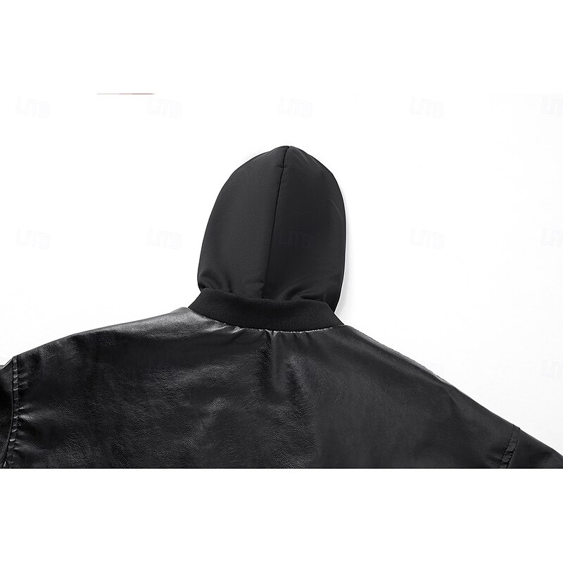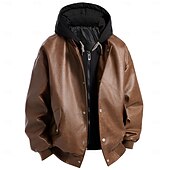 More information about Men's Faux Leather Jacket Hoodie Jacket Motorcycle Jacket Outdoor Casual Windbreaker Hooded Fake two piece Fall Winter Solid Color Punk Active Hooded Regular Black Brown Khaki Jacket