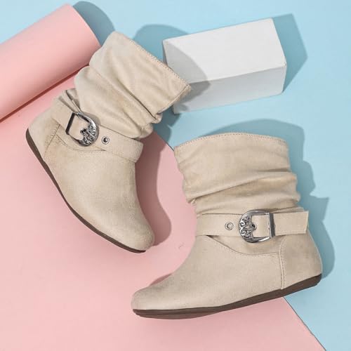 Girls Mid Calf Side Zipper Ankle Boots Suede Ruffle Dress Booties