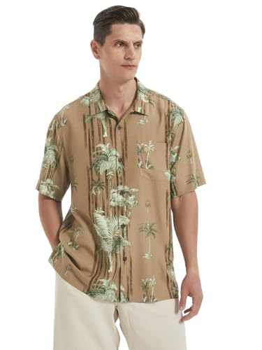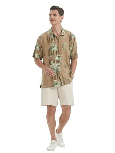 Men's Hawaiian Floral Shirts Silk Short Sleeve Button Down Casual Tropical Beach Holiday Shirts