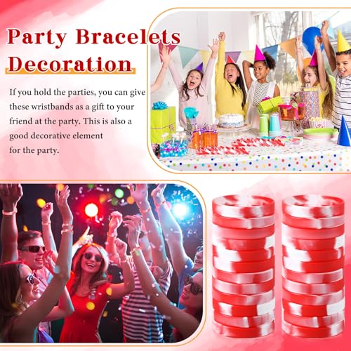 Liliful 50 Pcs Plain Silicone Rubber Bracelets Elastic Rubber Wristbands Blank Colored Bracelet Sports Bands for Stretch Wristband Wrist Bands for Women Men Party Gifts(Red and White)