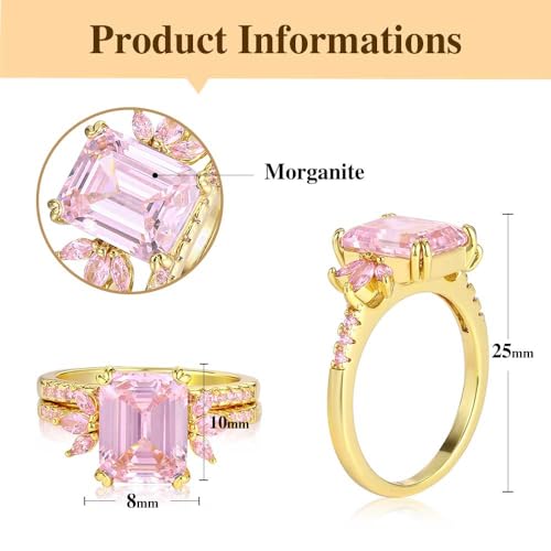 • 【Stackable Rings Material】The 18K gold plated wedding rings for women is made of environmentally friendly brass, high-quality pink morganite gemstones, sparkling like real pink diamonds, hand-set, sparkling.Nickel-free, lead-free, hypoallergenic.