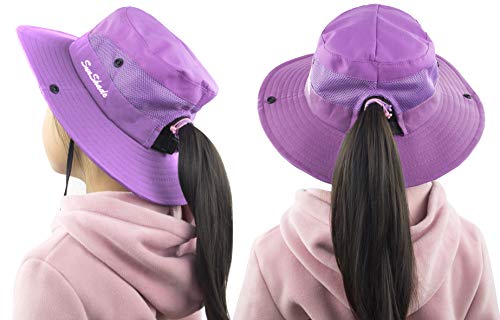 • GREAT LOOK: Kids sun hat with a ponytail hole is specially designed for girls to pull messy buns or ponytails. The ponytail hole is the perfect solution for girls with long hair to stand up or down, and show off the their cute hairstyles while keeping the head cool in the hot summer months.
