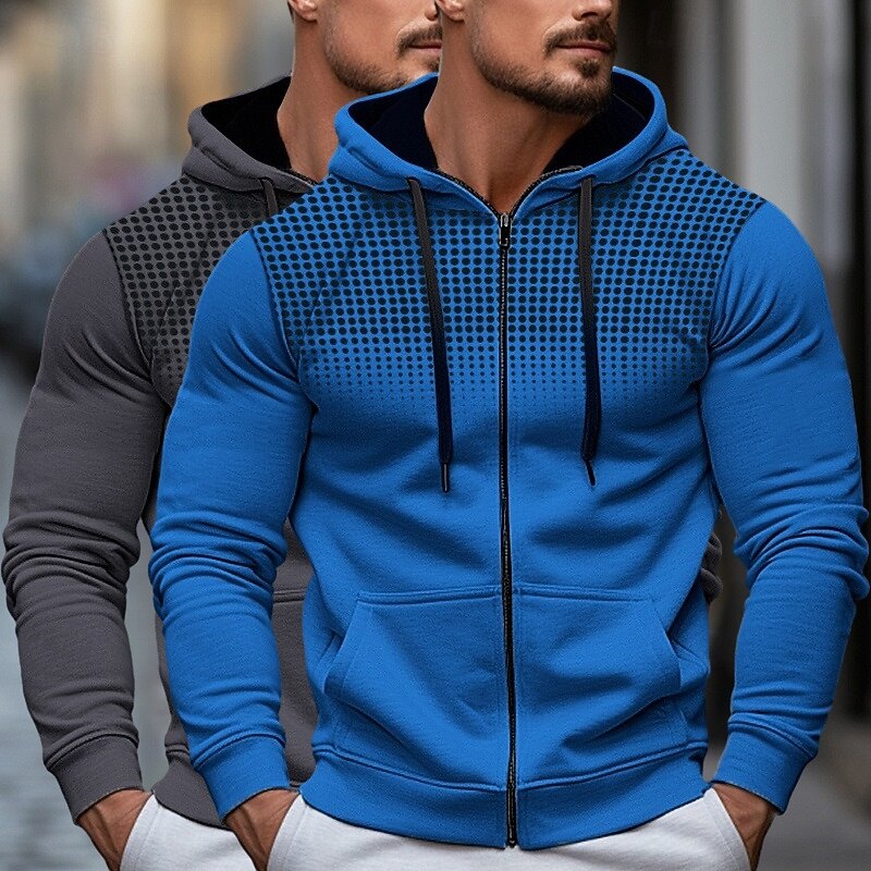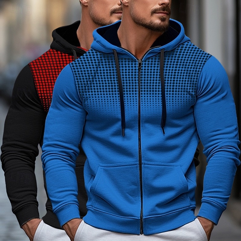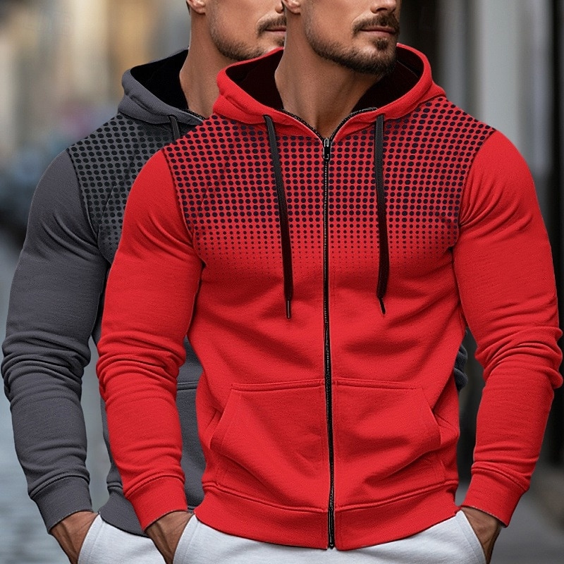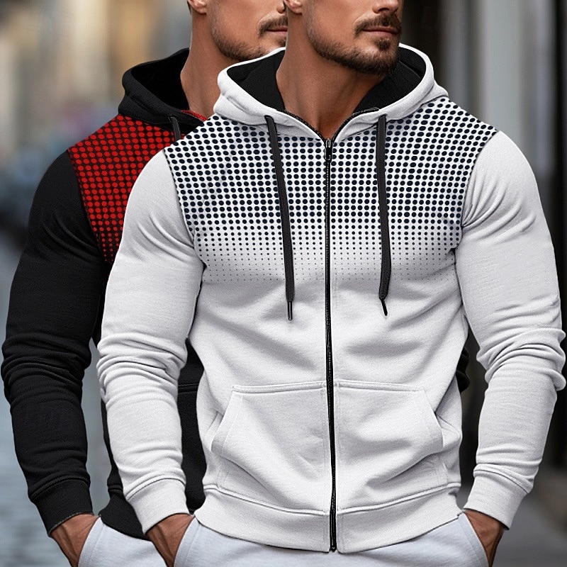 HOT ! Men's Hoodie Full Zip Hoodie Fleece Hoodie White+Red Red+Gray White+Black White+Gray Black+Gray Hooded Polka Dot Plain Zipper Color Block Sports & Outdoor Casual Daily Streetwear Cool Sportswear
