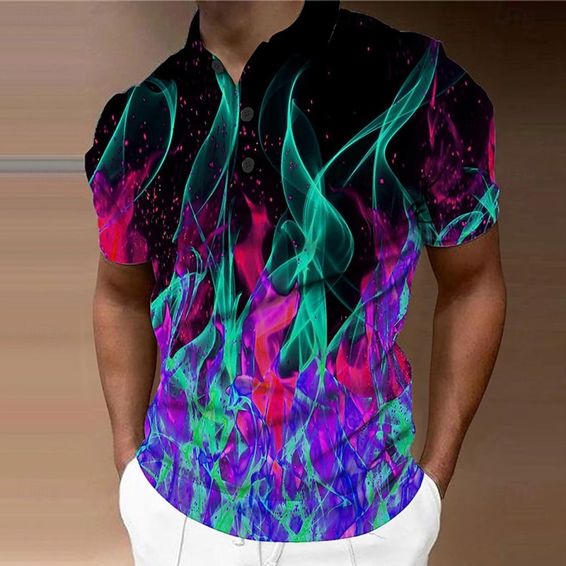 More information about Men's Graphic Polo Shirts Golf Shirt Short Sleeve Polo Shirts Collared Shirts Casual Vacation Wear Rave Wear Party Outfits Buttons 3D Print Light Green Red Blue