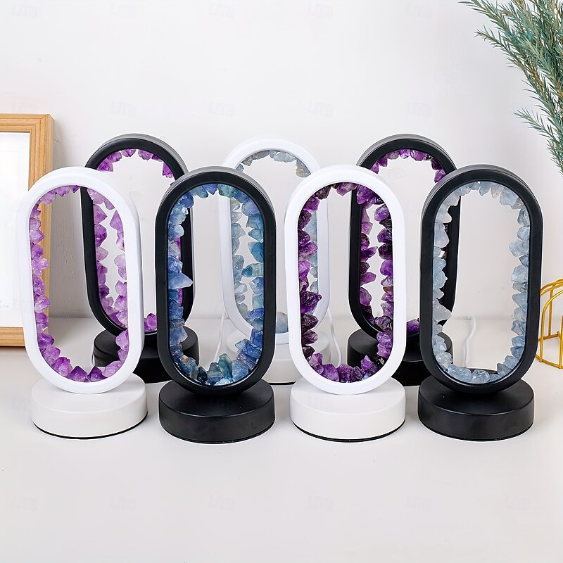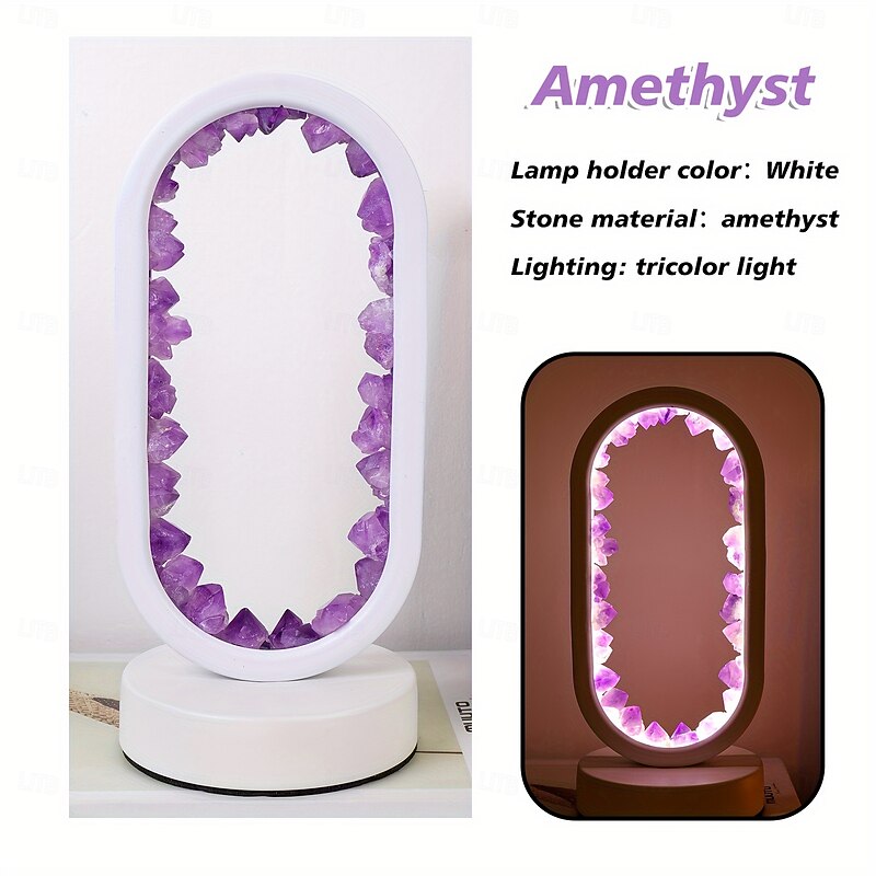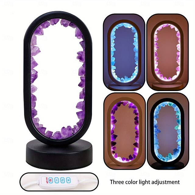 HOT ! 1pc Classic LED Bedside Lamp Natural Quartz Amethyst Flowers Raw Stone Crystal Soothing Night Light for Bedroom and Desk USB Powered Multi-Color Modes Ideal for Christmas Decor