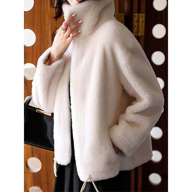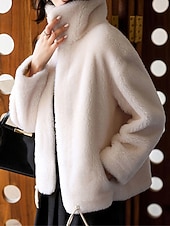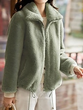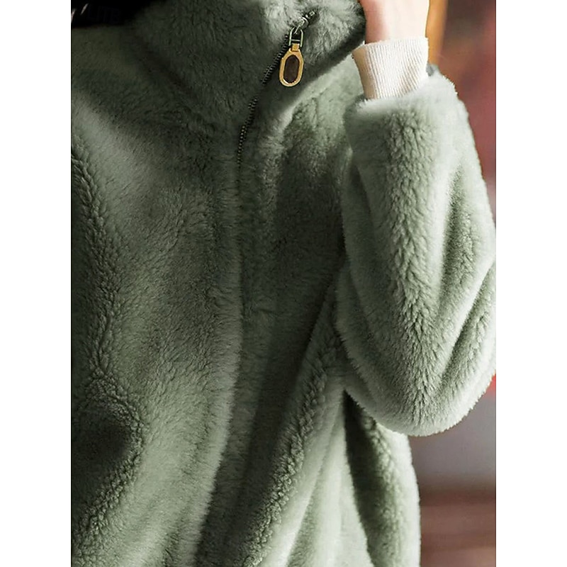 More information about Women's Sweatshirt Casual Sherpa Plain Street Dailywear Turtleneck Zipper Pocket Long Sleeve White Light Green Khaki Fall Winter