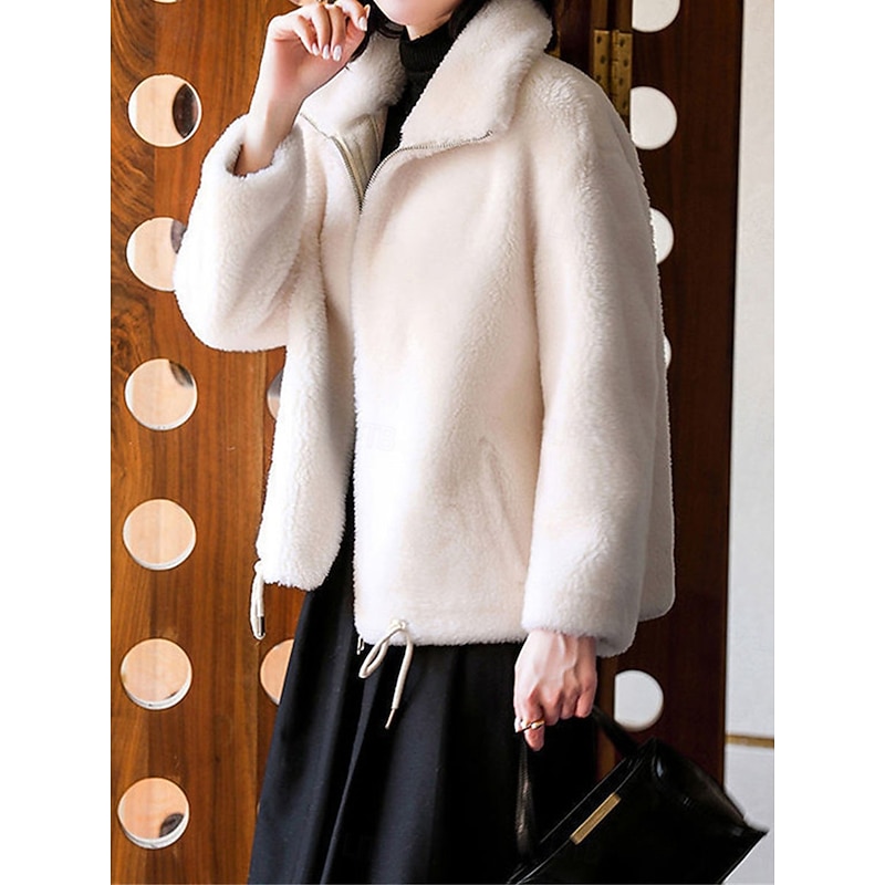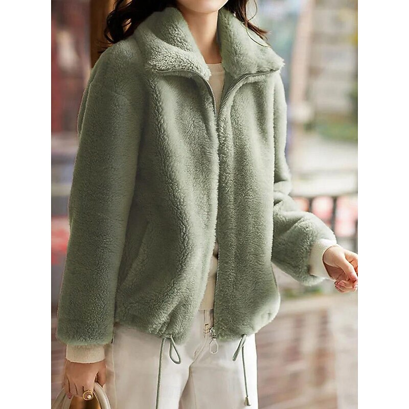 Highlights [Fabric]: Crafted from a blend of soft polyester and plush Sherpa fleece, this women's sweatshirt is designed to provide exceptional warmth and comfort during the fall and winter months. The micro-elastic fabric ensures a snug yet flexible fit that adapts to your movements. [Fit]: Featuring a relaxed, regular fit, this sweatshirt offers ease of movement and a comfortable wearing experience. The regular top length makes it a versatile piece that pairs well with a variety of bottoms for a casual, laid-back look. [Design Highlights]: The sweatshirt includes a practical front zipper and a turtleneck for added coziness, along with convenient pockets for functionality. Its plain design offers timeless style, while the micro-elastic fabric allows for unrestricted movement. [Occasions]: Ideal for daily wear and street style, this sweatshirt is perfect for casual outings or as a layering piece in cooler weather. Its versatility makes it suitable for a range of occasions, from relaxed weekends to running errands around town. [Size Range]: Available in sizes M, L, and XL, in colors White, Light Green, and Khaki, ensuring a suitable fit for a variety of body types and preferences.