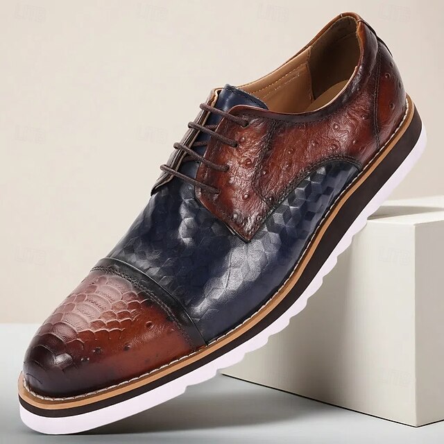 More information about Men's Brown Genuine Cowhide Leather Oxford Shoes with White Sole – Stylish Lace-Up Dress Shoes for Casual, Semi-Formal and Business Occasions