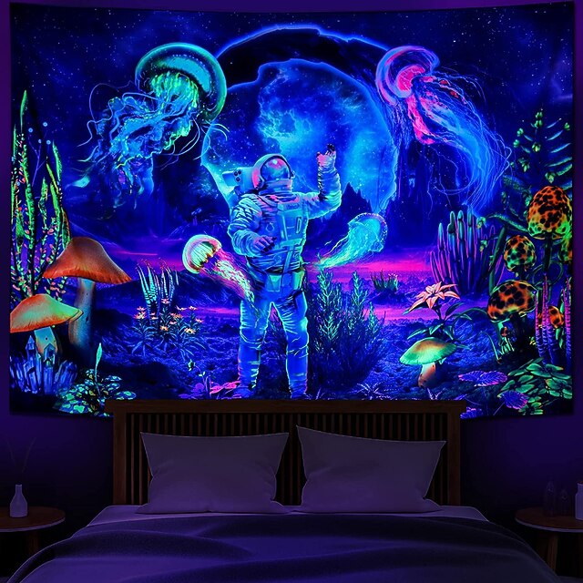HOT ! Blacklight Tapestry UV Reactive Glow in the Dark Glow Party Neon Astronaut Psychedelic Trippy Misty Hanging Tapestry Wall Art Mural for Living Room Bedroom