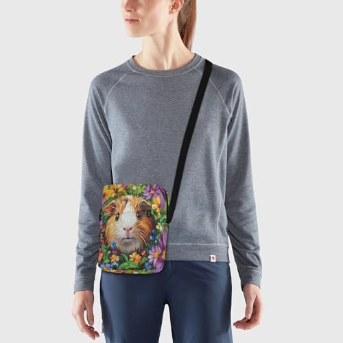 Crossbody Bag Cute Guinea Pig Spring Flowers Messenger Bag for Women Men Purse Shoulder Bag Satchel Bag with Adjustable Strap 214B8092 5