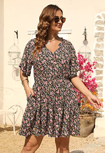 Nemidor Womens Plus Size Floral Print Boho Casual Layered Swing Skater Dress with Pocket NEM299 5