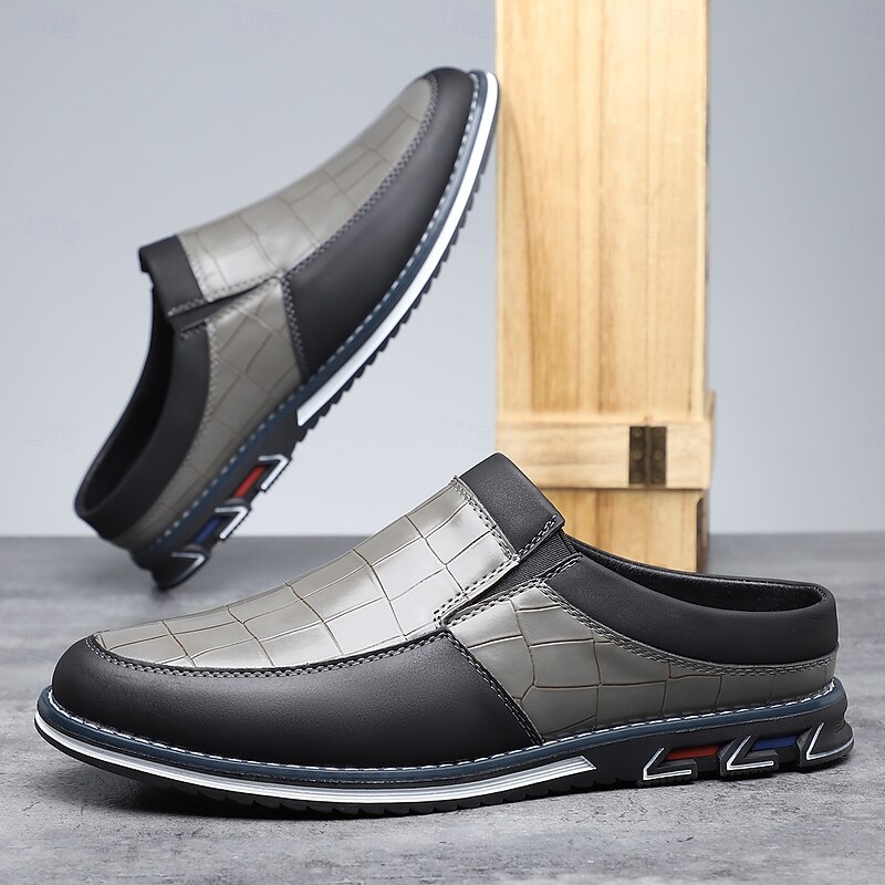 Men's Blue and Black Casual Slip-On Shoes – Crocodile Pattern Upper with Contrast Sole, Modern Lightweight Shoes for Travel, Business Casual and Daily Wear 6