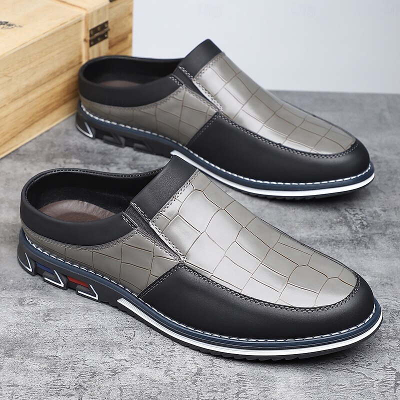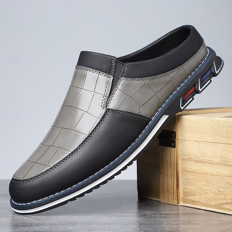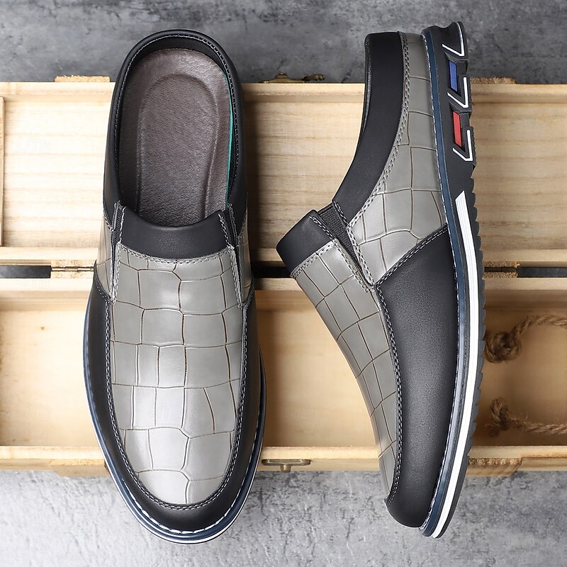 Men's Blue and Black Casual Slip-On Shoes – Crocodile Pattern Upper with Contrast Sole, Modern Lightweight Shoes for Travel, Business Casual and Daily Wear 19