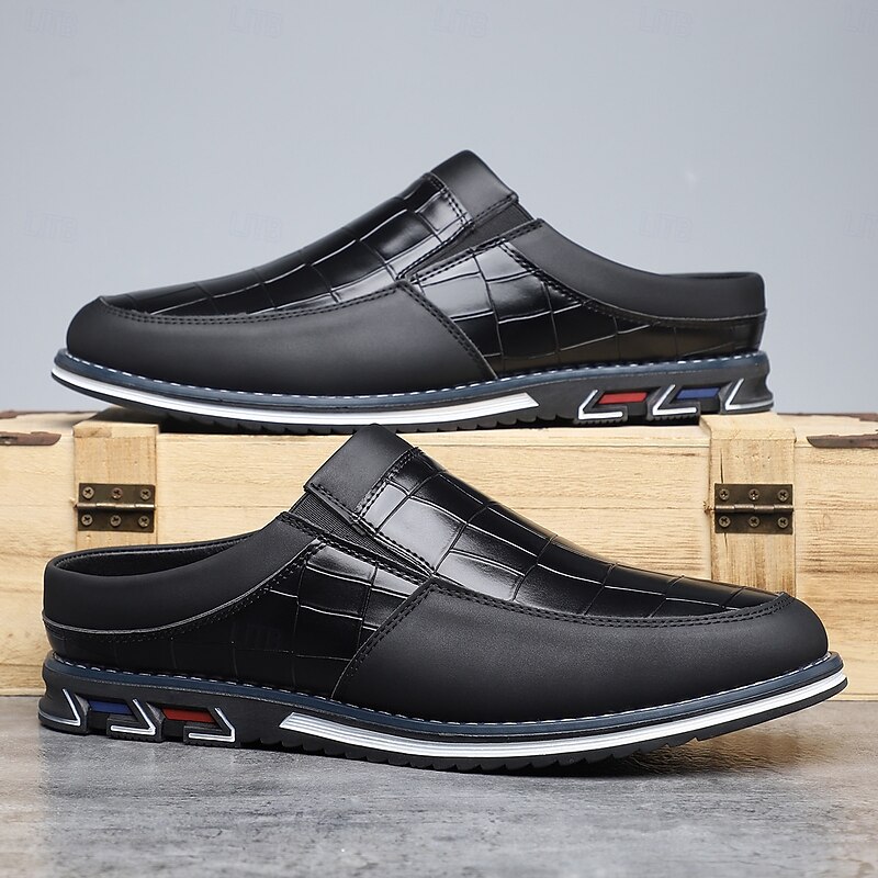 More information about Men's Blue and Black Casual Slip-On Shoes – Crocodile Pattern Upper with Contrast Sole, Modern Lightweight Shoes for Travel, Business Casual and Daily Wear