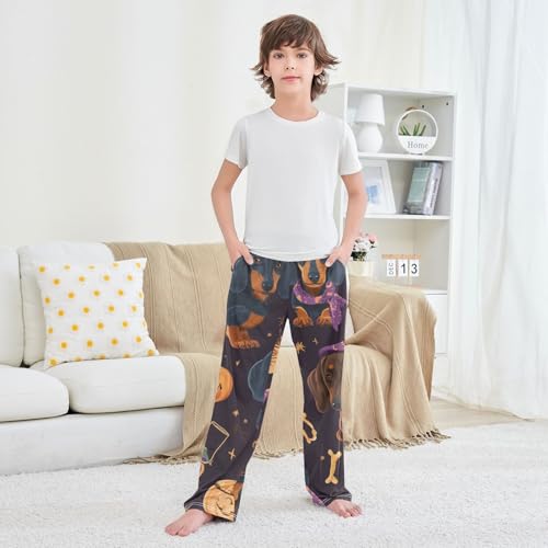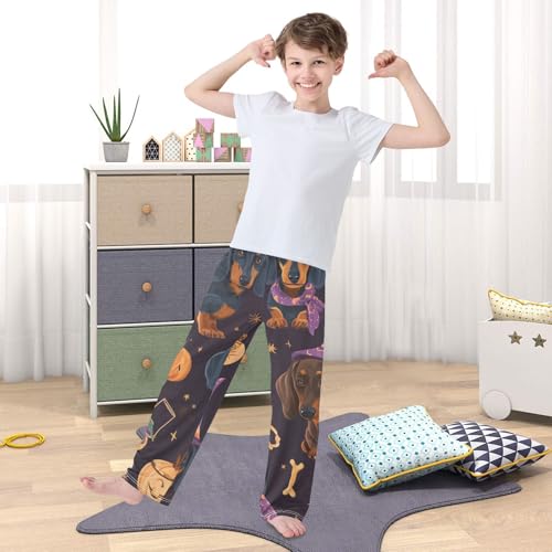 Halloween Pumpkin Dachshun Boys Long Pants Soft Trousers Elastic Waist Kids Lounge Bottoms with Pockets S-XL 6