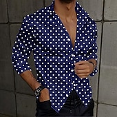More information about Men's Satin Shirt Dress Shirt Button Up Shirt Polka Dot Vacation Daily Black Blue Long Sleeve Turndown Summer Spring Clothing Apparel Buttons