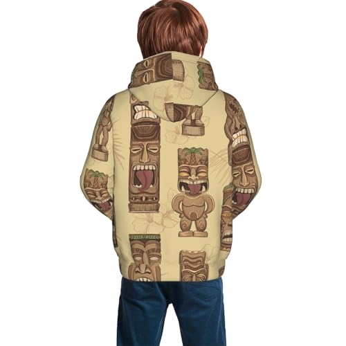 Wooden Tiki Idols Kids Pullover Hoodies Boys Sweatshirts Girls Athletic Clothes with Pocket 7