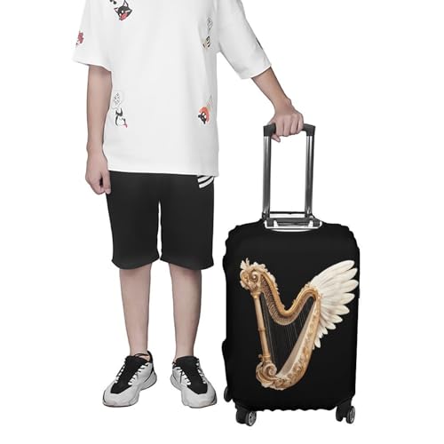 popular ! Harp with Wings Travel Luggage Cover for Suitcase 19-32 Inches Elastic Washable Baggage Protector