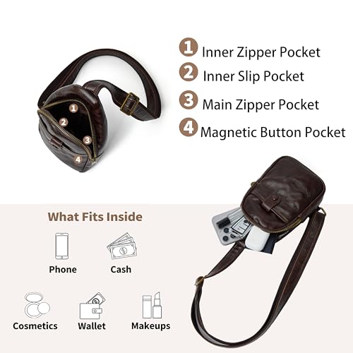 DAILANDO Vintage Leather Chest Sling Bag Unisex Crossbody Fanny Pack Backpack For Men And Women (Coffee) 6