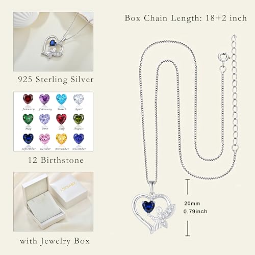 Guardian Angel Necklace 925 Sterling Silver Heart Angel Wings Pendant Birthstone Jewelry for Women 4