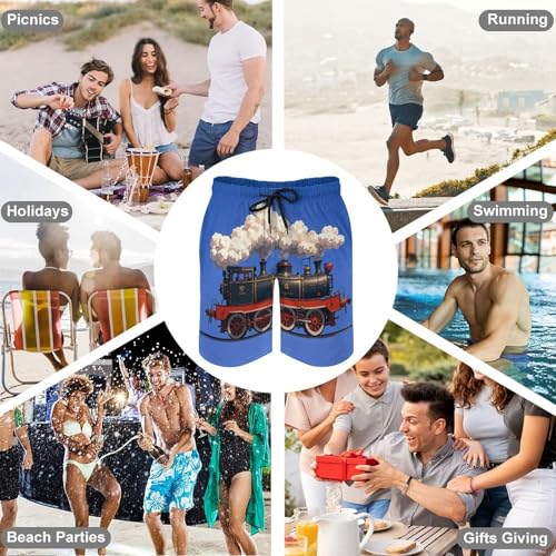 • 【Performance Fabric】Made with quick-drying materials, these Steam Train Clouds swim trunks for men are the perfect all-day wear for men. Whether you're surfing or swimming, these men's beach shorts dry quickly to keep you comfortable on the go.