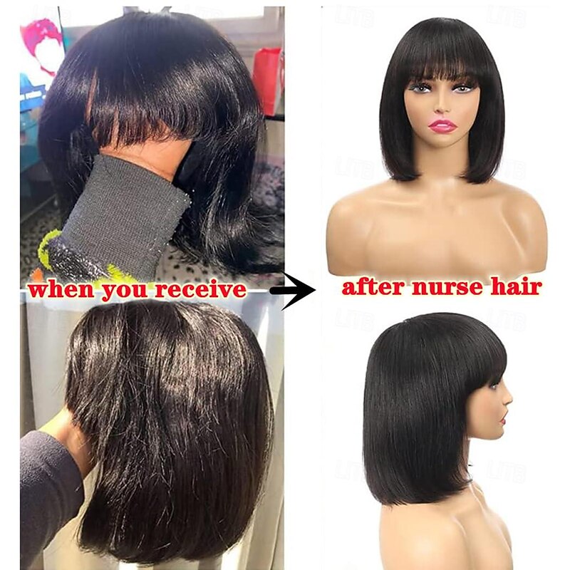 $78.99 - Human Hair Wigs with Bangs Straight Bob Wig Can be Permed & Dye 2025. Shop for cheap Human Hair Capless Wigs online? Buy at lightinthebox.com on sale today!