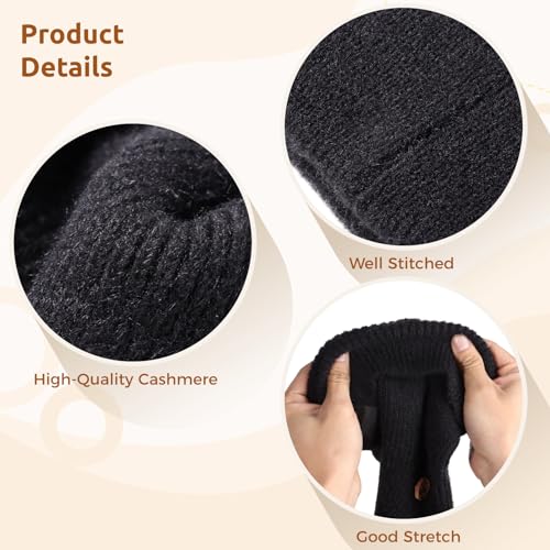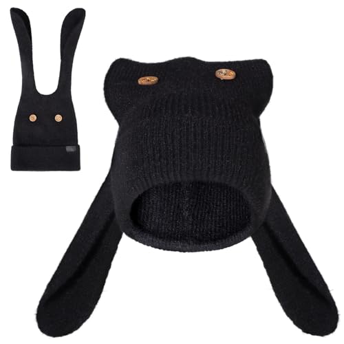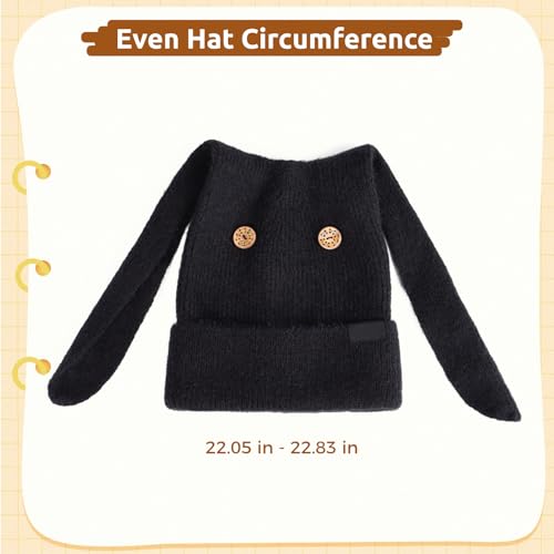 Bunny Beanie Hats for Women Cute Rabbit Ear Beanie Crochet Hats Winter Cap cozy Skull Cap Outdoor Ski Slouchy Black
