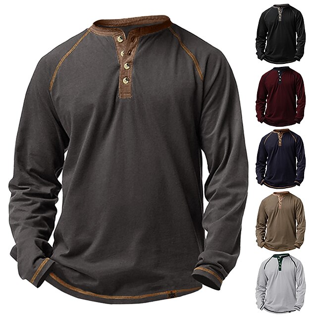 More information about Men's Button T Shirt Henley Shirt Long Sleeve Shirt Long Sleeve Henley Spring & Fall Plain Fashion Designer Casual Vacation Street Holiday Black Wine Royal Blue Top Tee for Men