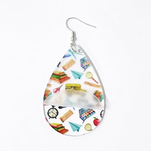 HOT ! Funny Teacher Teardrop Dangle Earrings for Women and Wooden Back to School Earrings Teacher Appreciation Jewelry