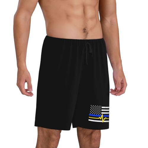 HOT ! 911 Dispatcher Thin Blue Gold Line Pajama Shorts for Men, Men's Pajama Bottoms, Sleepwear for Summer