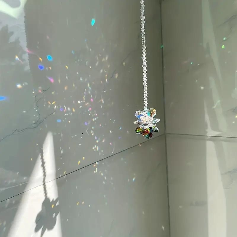 HOT ! Suncatcher Crystal Flower Wind Chimes -Sun Catchers Indoor Window Teardrop Crystal Beads Prism Sun Catcher Garden Outdoor Home Decorations Hanging Decor for Ceiling Kitchen Light Catcher
