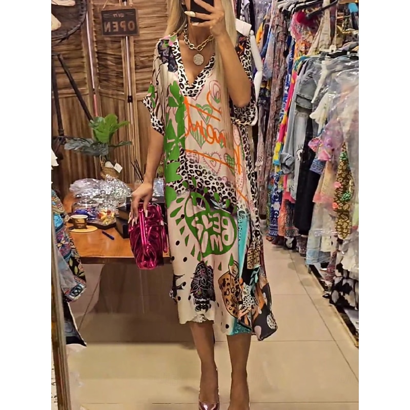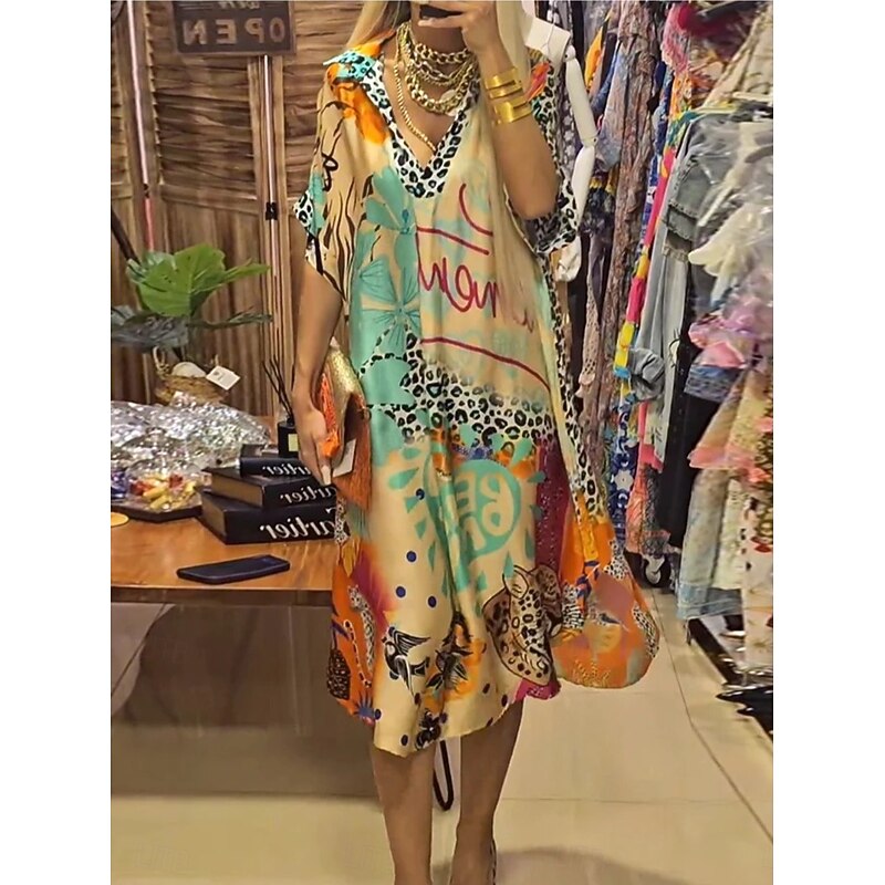 HOT ! Women's Midi Dress Casual Dress A Line Dress Stylish Casual Vacation Daily Loose Fit Heart Floral Leopard Short Sleeve V Neck Pink Blue Green Summer