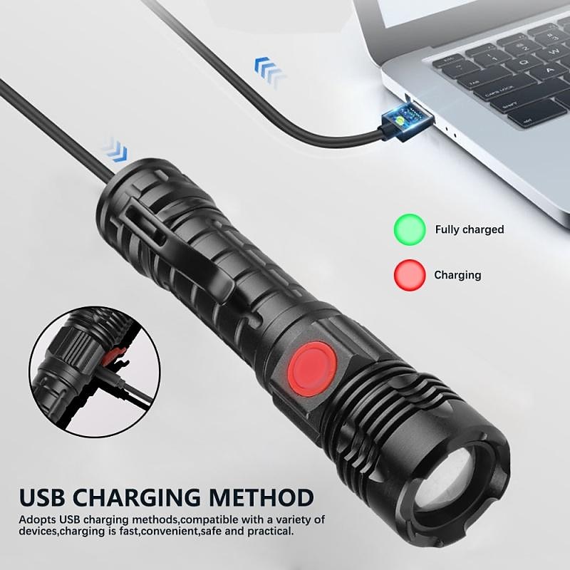 Powerful LED Flashlight High Power 18650 USB Rechargeable Zoom Fishing Lantern 5 Modes Waterproof Bicycle Light Tactical Torch 11