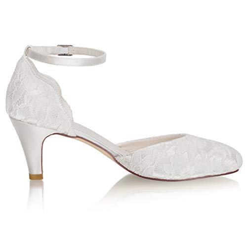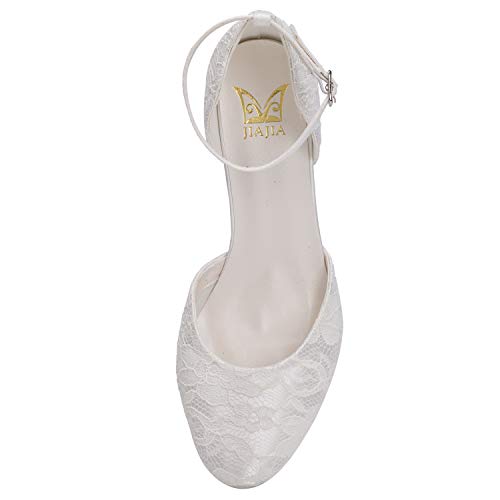 JIAJIA 62373 Women's Memory Foam Bridal Shoes Closed Toe 2.6'' Stiletto Mid Heel Lace Satin Pumps Wedding Shoes 4