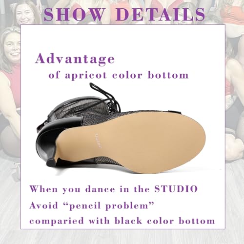 More information about Professional Dancing Heels for Women's, Lace-Up Mesh Jazz Shoes,Zipper Peep Toe Booties,Pole Dance Boots