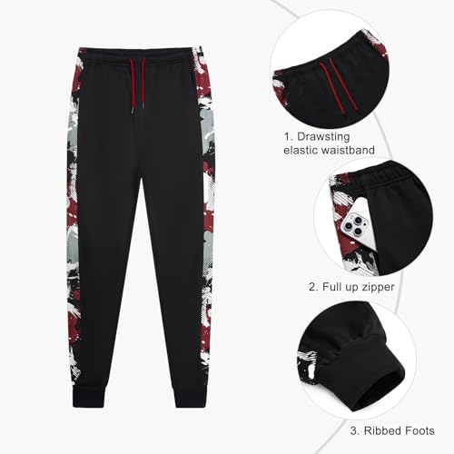 • Jogging sweatpants: long pants, ribbed foots, elastic drawstring to adjust the waistline