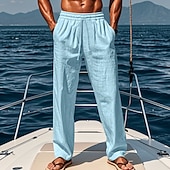 More information about Men's Linen Pants Trousers Summer Pants Beach Pants Elastic Waist Drawstring Straight Leg Plain Comfort Breathable Casual Daily Holiday Vacation Fashion Black White