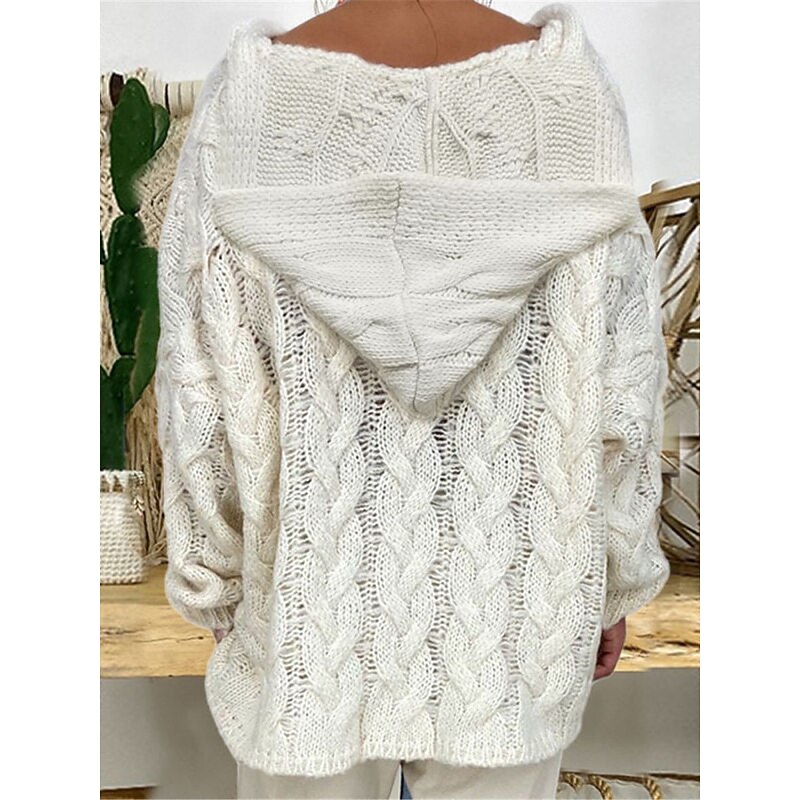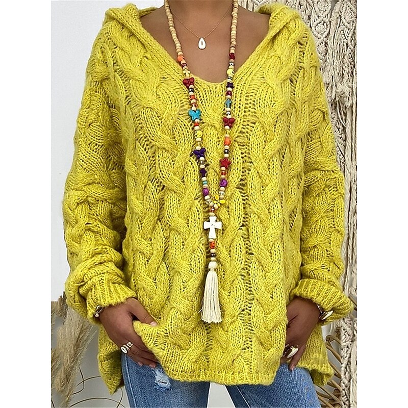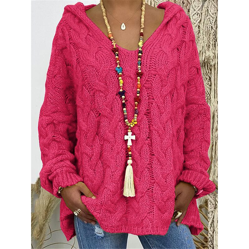 More information about Women's Pullover Sweater Jumper Hooded Cable Knit Oversized Fall Winter Daily Going out Weekend Stylish Casual Soft Long Sleeve Solid Color Black Pink