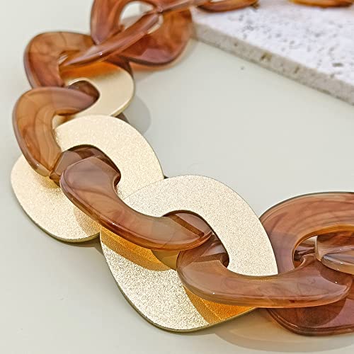 More information about Coiris Statement Chunky Necklace Metal Punk Acrylic Cuban Link Chain Necklaces Bohemian Tortoise Shell Acrylic Resin Chain Link